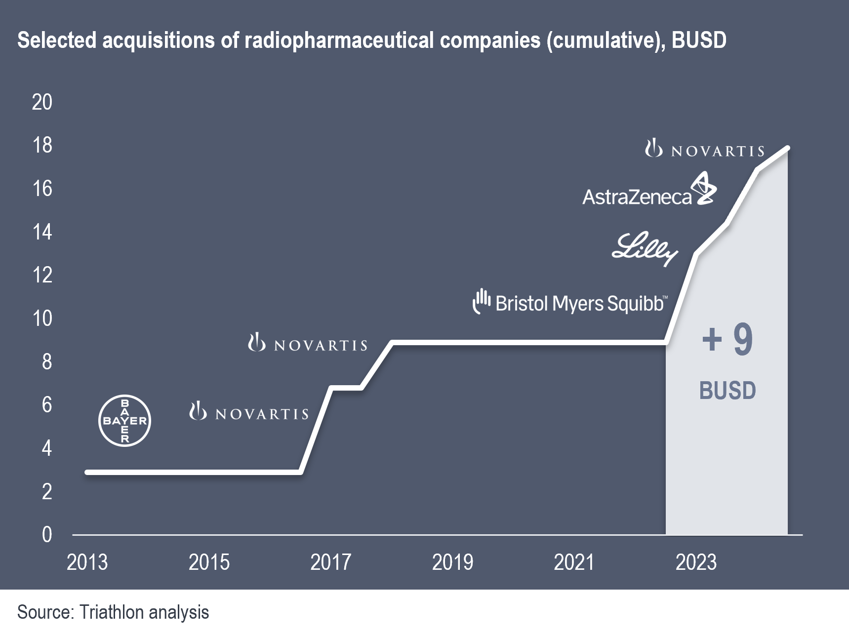 The cure of cancer? Maybe. Radiopharmaceuticals have gained lots of attention lately, given its potential as breakthrough treatment within oncology. Big-pharma expand their portfolios through transactions in the area, hoping to acquire the miracle compound. This modality has built up a real traction in the market with major recent deals, including AstraZeneca’s acquisition of Fusion in March and Novartis acquisition of Mariana Oncology announced in May 2024. Following the surge in funding and significant investments being made, we expect to see more radiopharmaceutical drug candidates reach the clinic soon.