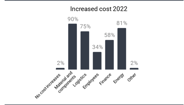 The survey clearly highlights that companies experience increased costs, which is expected to continue 2023. However, 82% of the companies have been able to increase their prices in line with or more than the cost increase. Price hikes are expected to continue next year, and most companies expect that their price increases will be equal or larger next year.
